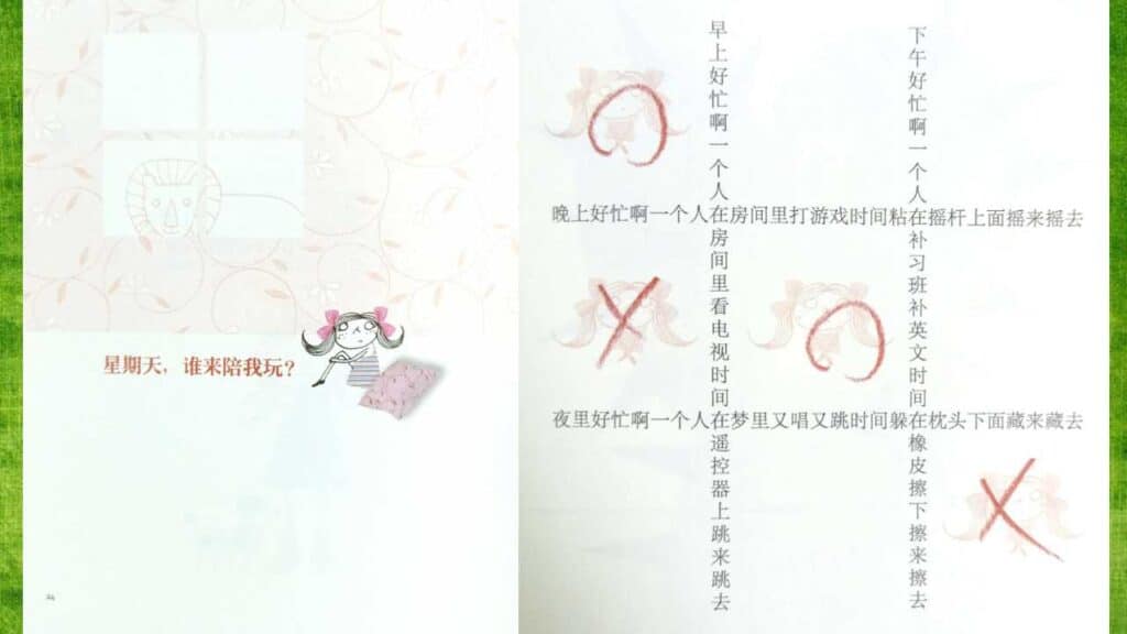 在读写活动方面,我采用《星期天,谁来陪我玩?》及《有一个字》这两首童诗。