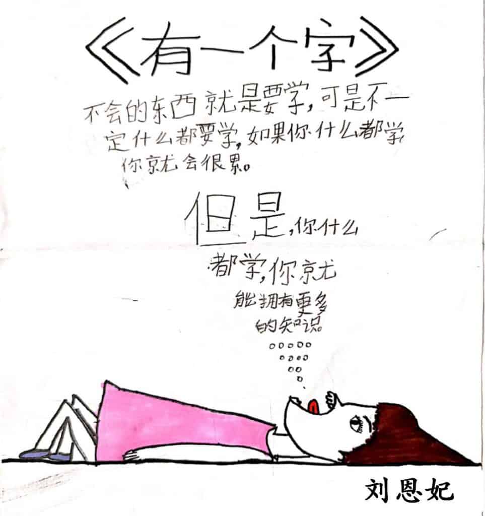 在意气消沉来袭前,我的华文主任——億晶老师发了一通信息给我,向我推荐了林世仁老师的《文字森林海:林世仁的图象诗绘本》,然后拍了几张《文字森林海》的童诗给我看。倒置的童诗、放大缩小的童诗、散开的童诗,还叠罗汉的童诗……哇,当时我头上冒气了好多惊叹号!原来图像诗可以这么创作哦!