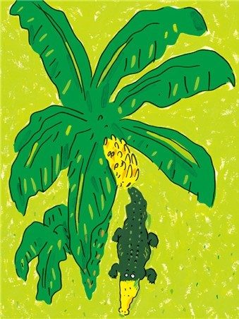 鳄鱼从来没吃过这么好吃的东西,不由得笑了起来。从此,他每天在树下,等着吃又香又软又甜的香蕉。