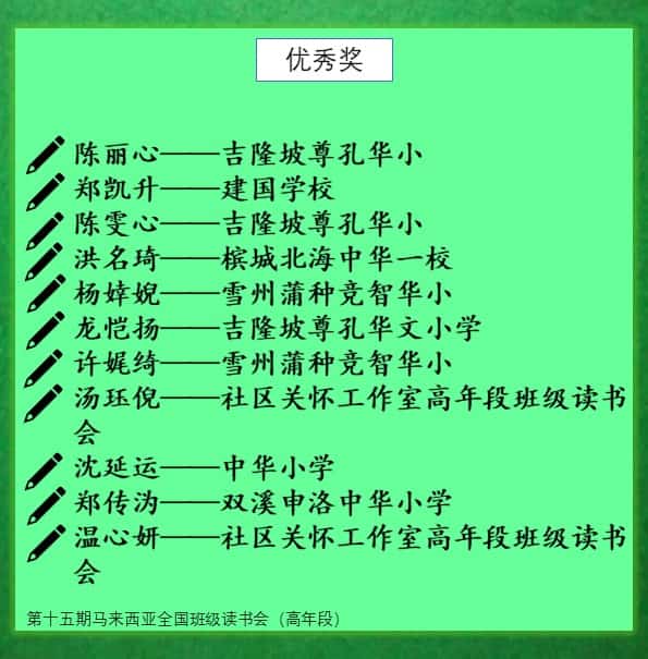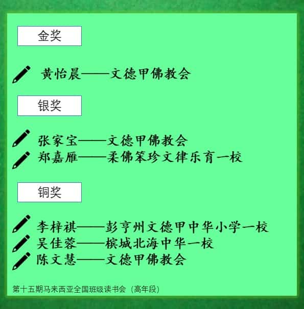 [金] 黄怡晨[银] 张家宝[银] 郑嘉雁[铜]李梓祺[铜] 吴佳蓉[铜] 陈文慧[优秀] 陈丽心[优秀] 郑凯升[优秀] 陈雯心[优秀] 洪名琦[优秀] 杨婞婗[优秀] 龙恺扬[优秀] 许娓绮[优秀] 汤珏倪[优秀] 沈延运[优秀] 郑传沩[优秀] 温心妍