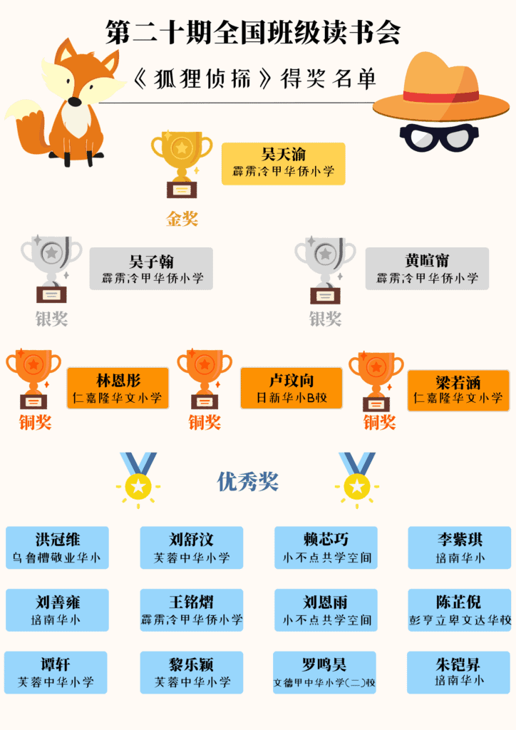 第20期马来西亚全国班级读书会得奖名单——中年段《狐狸侦探》