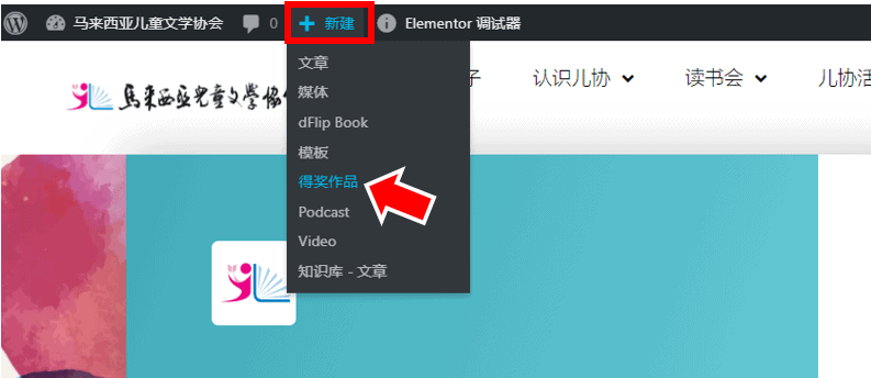 1. 要进入【得奖作品】发帖页面,请把滑鼠放在【新帖子】上,后点击【得奖作品】