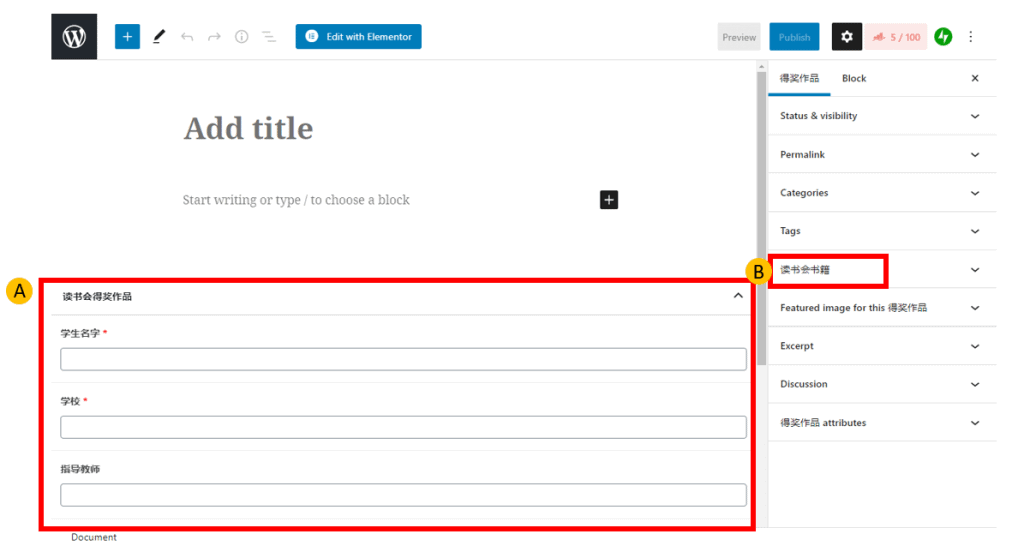 2. 得奖作品发帖页面有多了两个部分:A-得奖作品栏 和 B-读书会书籍