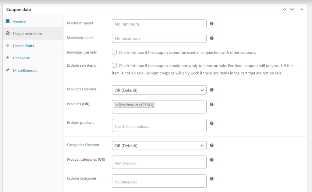 如果后期有提供其他的 Coupon 做 promotion 时,可以打勾 【Individual Use Only】以避免两个 coupon 被同时使用。
