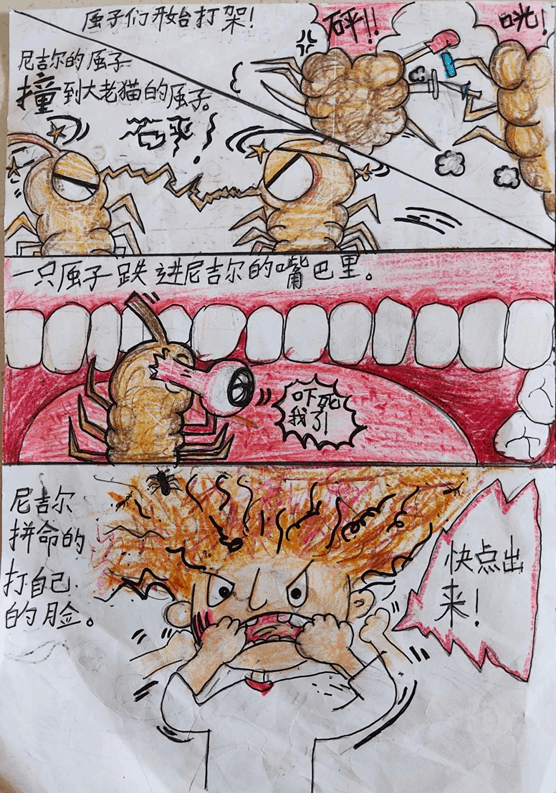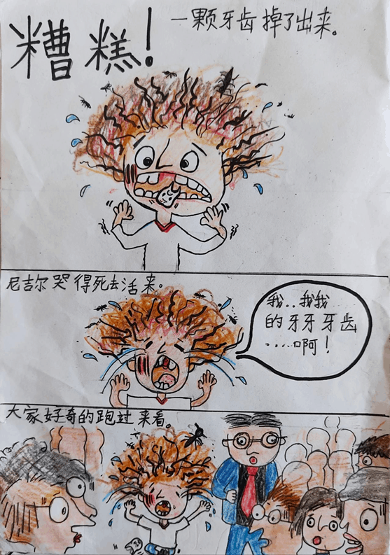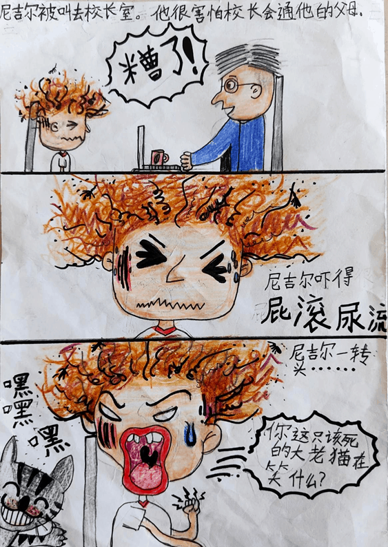 志豪很有创作漫画的天赋呢!特别欣赏作品中图画的表现力,线条的力量、比例的掌握、表情的刻画,都很优秀呢!如果故事能更长一点,更曲折一点,加上图画的助力,一定会更厉害哦!