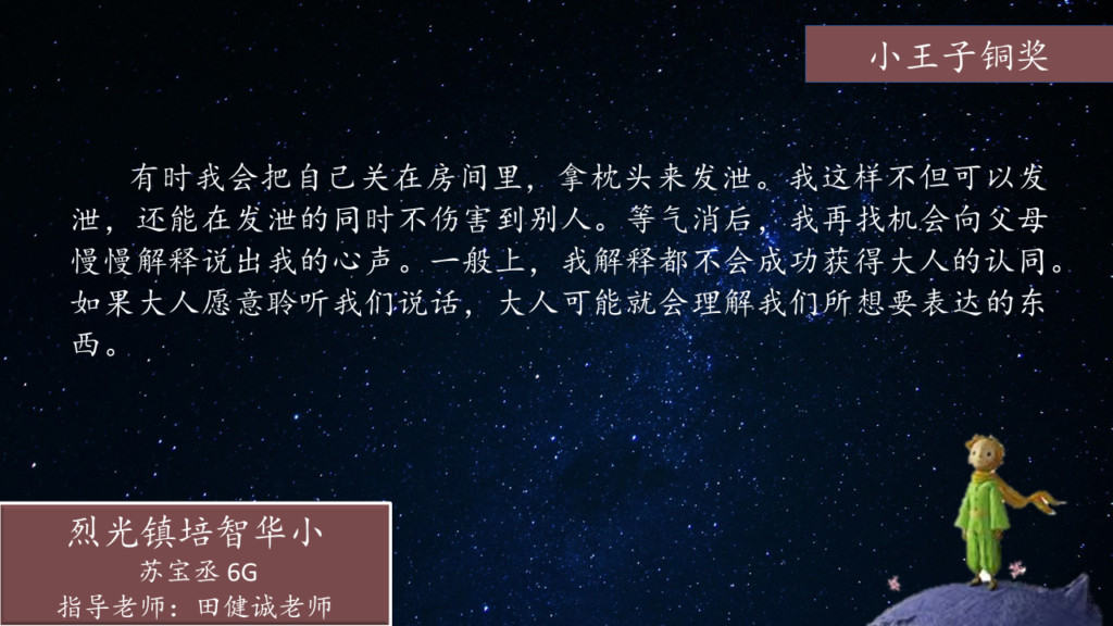 有时我会把自己关在房间里,拿枕头来发泄。我这样不但可以发泄,还能在发泄的同时不伤害到别人。等气消后,我再找机会向父母慢慢解释说出我的心声。一般上,我解释都不会成功获得大人的认同。如果大人愿意聆听我们说话,大人可能就会理解我们所想要表达的东西。