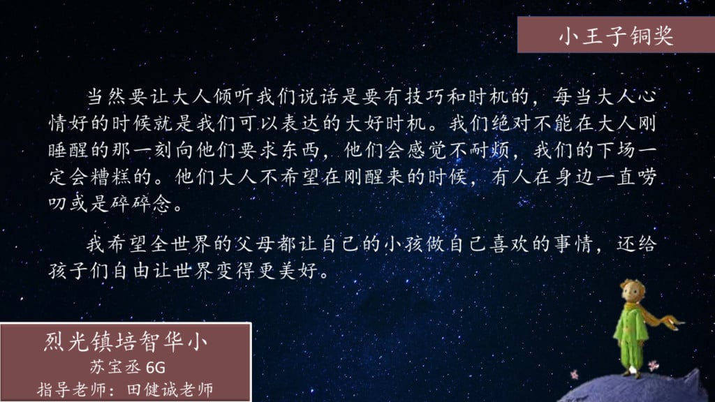 我希望全世界的父母都让自己的小孩做自己喜欢的事情,还给孩子们自由让世界变得更美好。