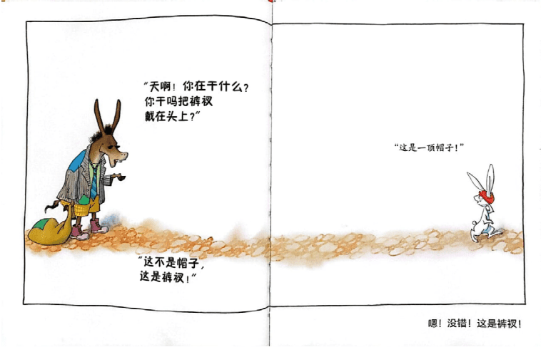 裤衩:呃,这不是刚刚见到的会穿衣服的驴子吗?快来救我啊!我要回家了啦!