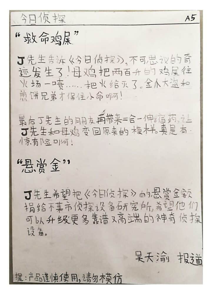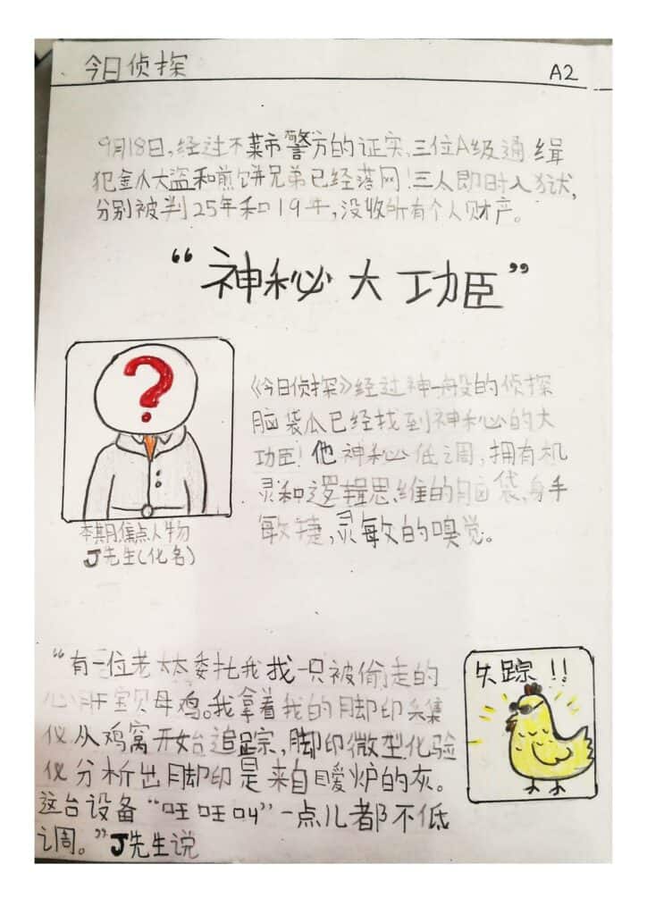 优点:这篇真是很成熟的人物采访稿,天渝年纪小小,却颇有记者风范。内容既有当事人的话,也有记者的说明补充。天渝还很有条理地给事件的各个阶段取了标题,使事件过程清晰明了。虽然图片和文字排版不在评审标准内,但也要赞一赞天渝的用心和巧思。