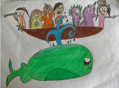 我的玩具小船慢慢变大了,我们上了船后,眼前变成了一片大海。出发吧!!!! 划呀,划呀,划。。。