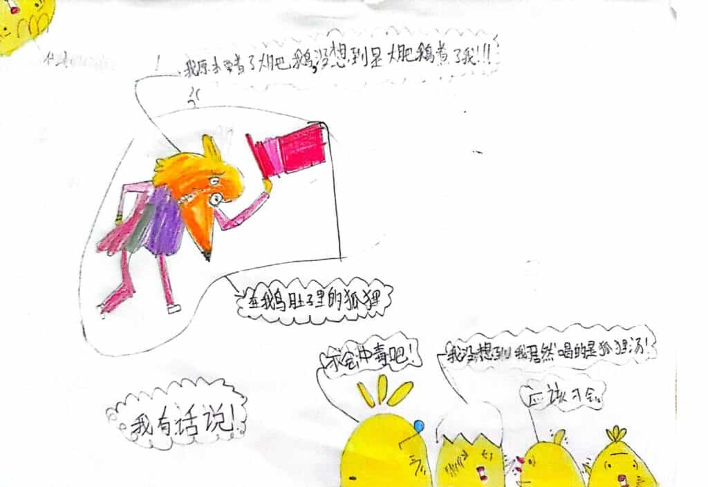 恭喜宇恒。宇恒真的站在狐狸的角度来说话。宇恒展示了如果重来。狐狸会在那一个方面更放个留心,充分展现了“经一事,长一智”的样子,无奈狐狸已经在鹅的肚子里了。还有,老师很喜欢宇恒最后一句,让人给人积极生活的鼓励:如果让我再来一次,我一定要学习这次的经验。下次只许成功,不许失败!